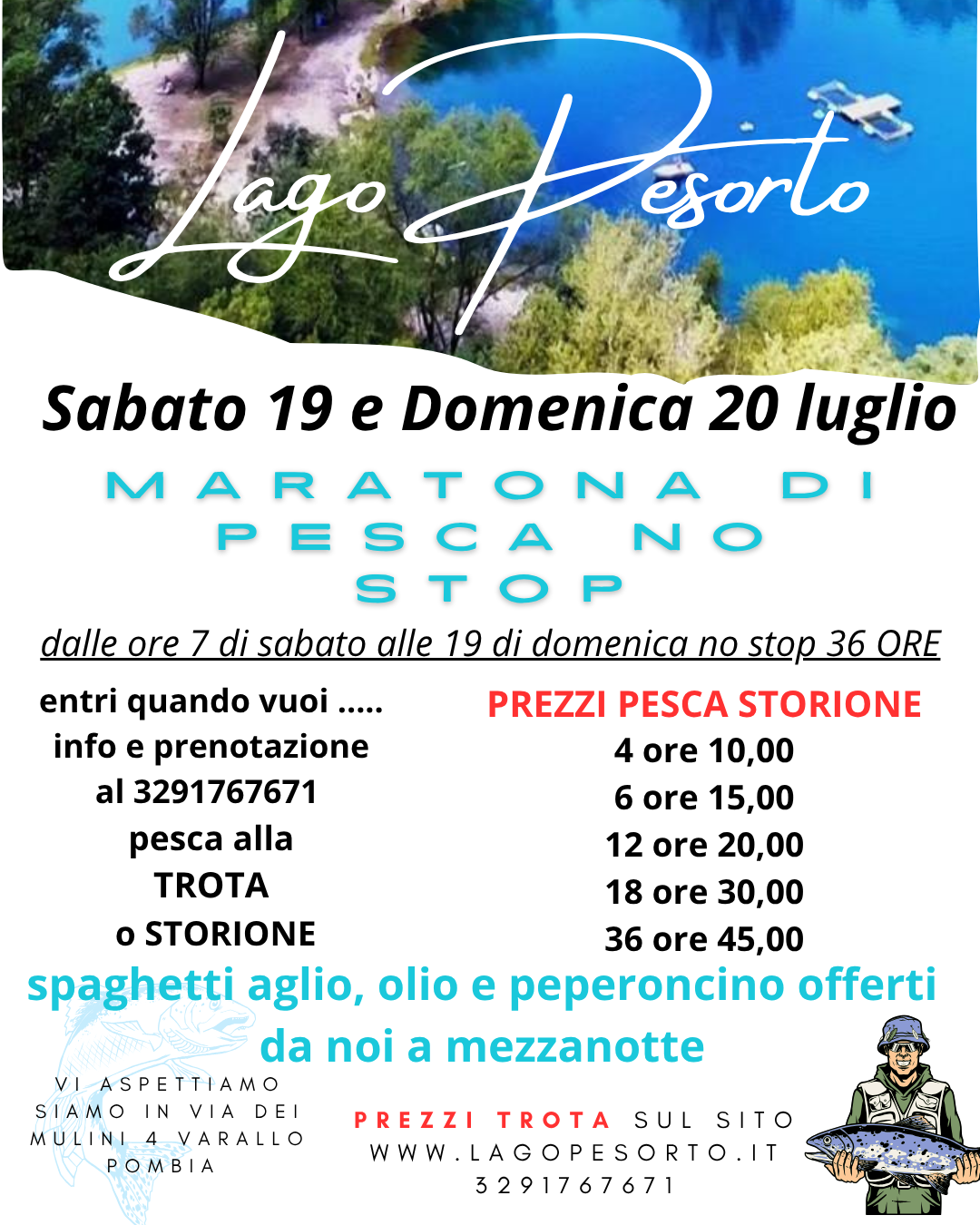 Pesca in notturna fino a mezzanotte tutti i venerdì sera.... Possibilità di pescare STORIONI e TROTE